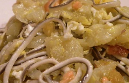Busca todas las fotos que hemos recibido para esta receta de Huevos rotos con salchichas y gulas.