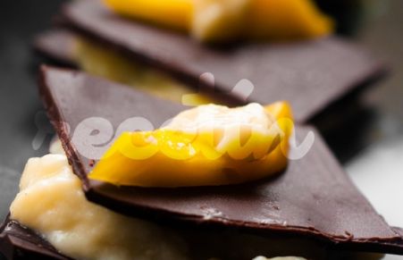 Busca todas las fotos que hemos recibido para esta receta de Milhojas de chocolate con mousse de mango.