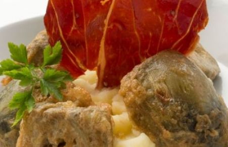 Busca todas las fotos que hemos recibido para esta receta de Alcachofas rebozadas con puré de patata y jamón.