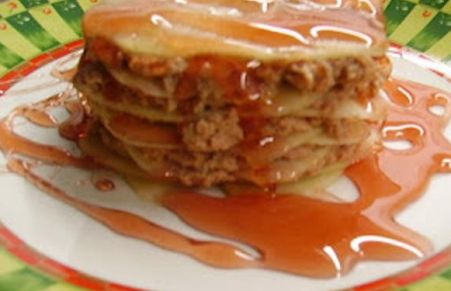 Milhojas de foie y manzana caramelizada al jarabe de pacharán