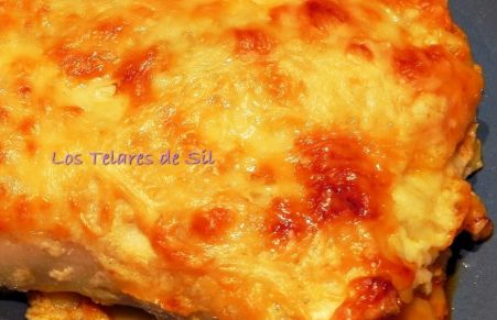 Canelones de atún, huevo, queso y champiñones