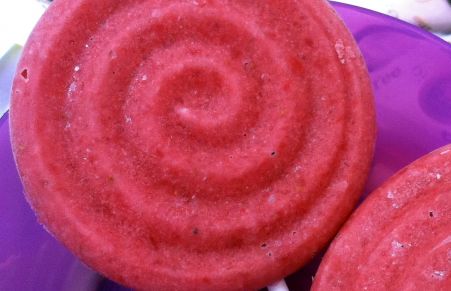 "Hice dos tipos de helado de fresa este verano, uno de fresas con nata que no acabó de convencerme y éste. Tendré que repetirlo el año que viene con un poco más de azúcar invertido -ya corregido en la receta-, ya que aunque está muy rico de sabor, no quedó todo lo cremoso que yo buscaba.