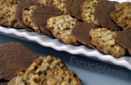"Las moscovitas son unas pastas finas de almendra marcona y cobertura de chocolate elaboradas por la confitería Rialto de Oviedo; no sé si ellos las crearon o tomaron la receta de otro sitio pero la verdad es que aquí todo el mundo las conoce como las moscovitas de Rialto.