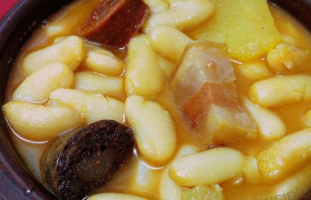 "El plato estrella de nuestra cocina asturiana. Receta simple aunque no fácil, múltiples factores pueden echar a perder su elaboración, no desalar bien la carne, cocer a fuego fuerte... . Durante su elaboración no debe removerse con ningún instrumento, basta con mover la olla.