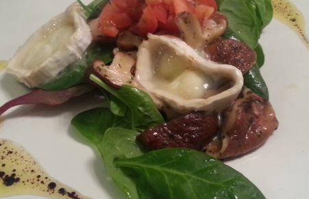 Ensalada de shiitake, brotes y queso de cabra