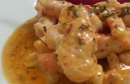 Busca todas las fotos que hemos recibido para esta receta de Pollo con gambas en salsa de guindilla y queso.