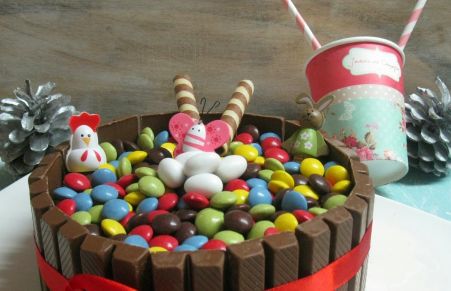 La tarta kit kat me encanta hacerla y aquí la tenéis esta hecha en un molde de 18 cm , así que es pequeñita no hay excusas para no hacerla es ideal para los cumpleaños y muy vistosa ..