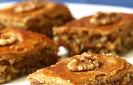 La Baklava, Baclava o Baklawa es un pastel hecho con una mezcla de nueces, almendras y pistachos triturados y distribuido en pasta filo, finalmente bañado con una almíbar o miel. Es un postre típico de Oriente Medio y de los Balcanes.