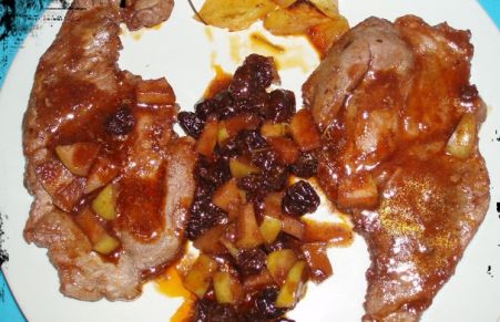 Busca todas las fotos que hemos recibido para esta receta de Chuletas de cerco con manzanas y uvas pasas.
