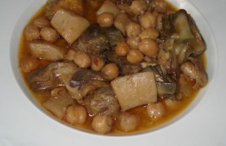 Garbanzos con choco y alcachofas