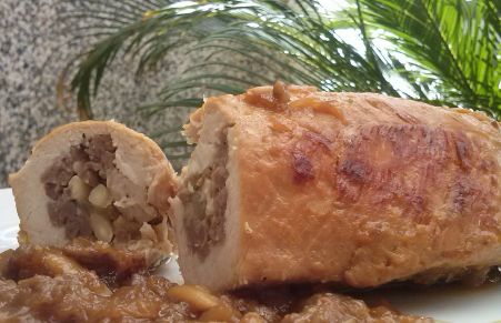 Solomillo de pavo relleno de ternera, manzanas y piñones