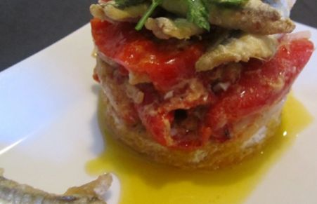 Busca todas las fotos que hemos recibido para esta receta de Timbal de pimientos asados con boquerones fritos.