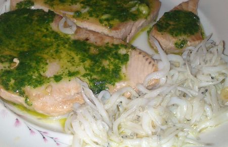 Filetes de atún fresco con salsa verde y chanquetes de guarnición