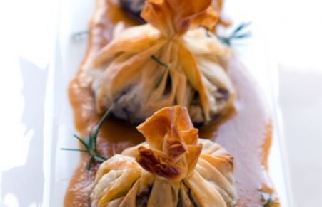 SAQUITOS DE PASTA FILO RELLENOS DE RABO DE TORO