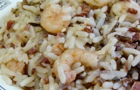 Arroz salvaje con gambas y jamón