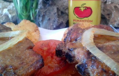 Costillas al horno con piña y patatas
