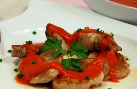 Busca todas las fotos que hemos recibido para esta receta de Solomillo de cerdo en salsa de pimientos rojos.