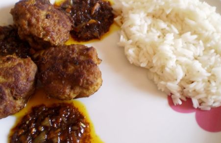 Fricadel (albóndigas en salsa de chalotas)