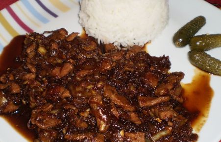 El "babi ketjap" es una receta de cocina indonesia que se compone, básicamente, de cerdo marinado hervido a fuego lento en jugo de cebolla y ketjap.