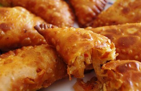 Estos "pasteitjes" son unas empanadillas rellenas de pollo y verduras que llevan algunas especias no habituales aquí pero si en la cocina indonesia y que se suelen tomar como "snack" y se suelen vender en puestos ambulantes en Holanda.