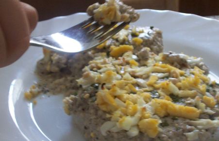 Merluza con salsa de almendras y huevo
