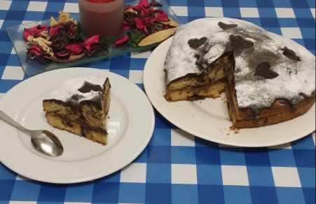 Busca todas las fotos que hemos recibido para esta receta de Bizcocho Corazón relleno de crema de cacao y queso.