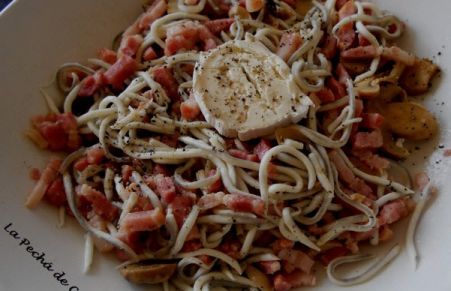 Ensalada de gulas, champiñones y queso de cabra