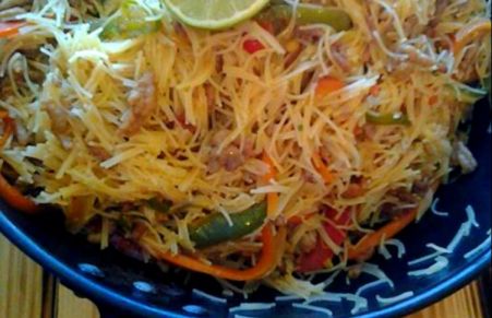Fideos picantes con cerdo y salsa de soja