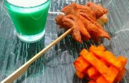 Pincho Tandoori con salsa de yogurt y boniato frito