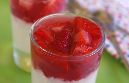 Vasito de cuajada y gelatina de fresa (Thermomix)