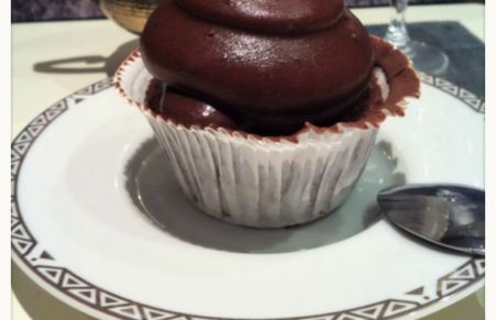 Impresionantes cupcakes coronados con copetes de merengue bañado en chocolate.