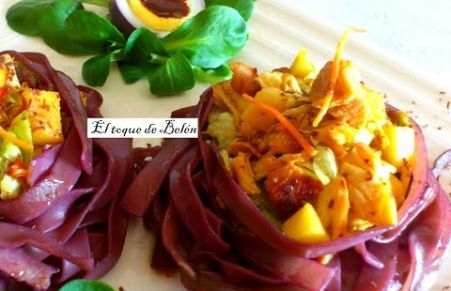Busca todas las fotos que hemos recibido para esta receta de Tallarines al vino tinto con vinagreta de chocolate.