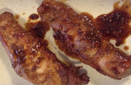 Solomillo de cerdo con salsa de Coca Cola y cebolla.