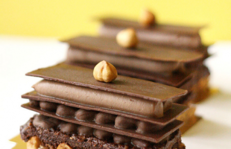 Milhojas de chocolate con brownie de avellana