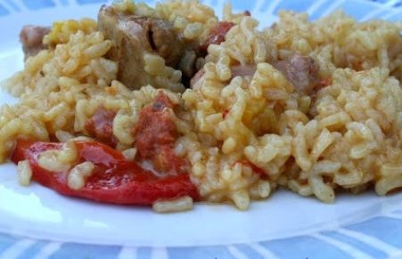 La receta del arroz a la asturiana la conozco a través de una fiesta que se hace en el barrio avilesino de Miranda; hace años que se viene organizando la preparación de esta arrozada y su reparto, en una fiesta de "prao" que tiene lugar el primer viernes de agosto.