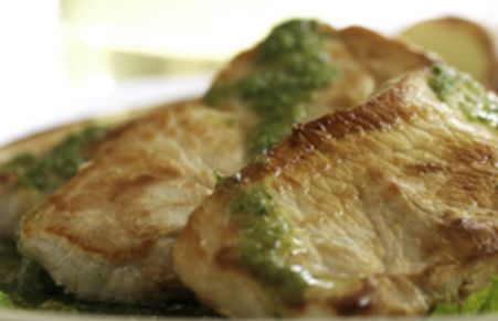 Lomo de cerdo al pesto de perejil y almendras con manzanas