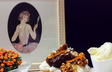 Blinis con higos en almíbar y nueces sobre crema de mantequilla