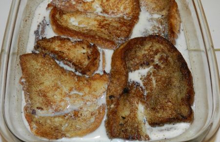 Torrijas mojadas con leche, variante de las torrijas secas de Semana Santa