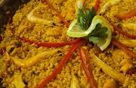 Arroz con pollo y gambas