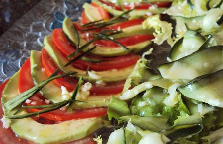 Ensalada de carpaccio de aguacate con pepino aliñado