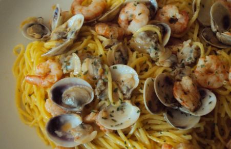 Busca todas las fotos que hemos recibido para esta receta de Espaguetis con almejas y gambas.