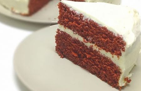 Tarta de bizcocho de intenso color rojo y sabor delicioso.