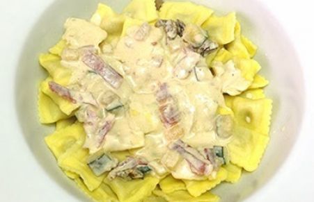 Busca todas las fotos que hemos recibido para esta receta de Ravioli al funghi con salsa de ibérico.