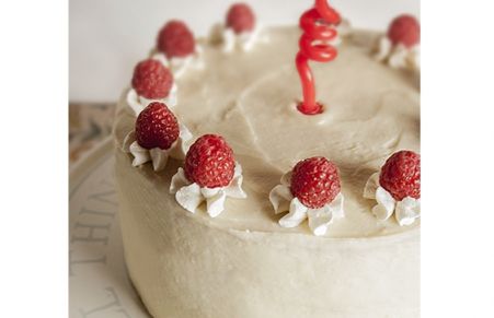 Receta de tarta layer cake con relleno de mermelada de frambuesas y cobertura de chocolate blanco, en la que la dulzura del chocolate combina a la perfección con la acidez de las frambuesas haciendo una mezcla de sabores deliciosa.