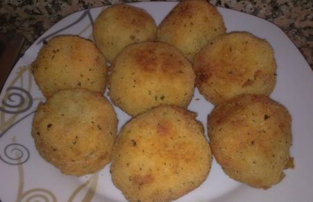Bombas rellenas de carne picada y salsa picante