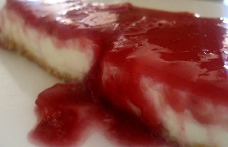 Tarta de queso crema con cobertura de frambuesa