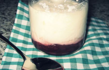Yogures naturales con mermelada de cereza