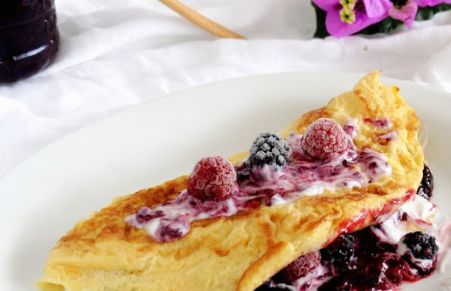 Omelette Sucrée - Tortilla dulce con yogur y mermelada de moras con frambuesas