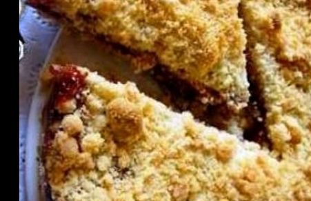 Se ponen todos los ingredientes menos la mermelada en un bol y se hace una masa que queda con una consistencia arenosa. En batidora se mezcla todo .