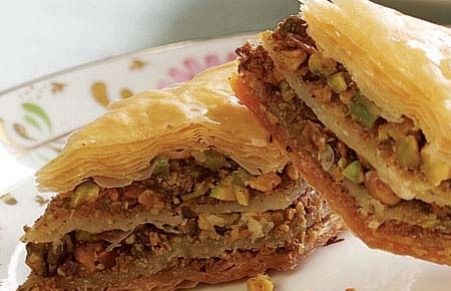 Exquisito dulce árabe hojaldrado relleno de frutos secos